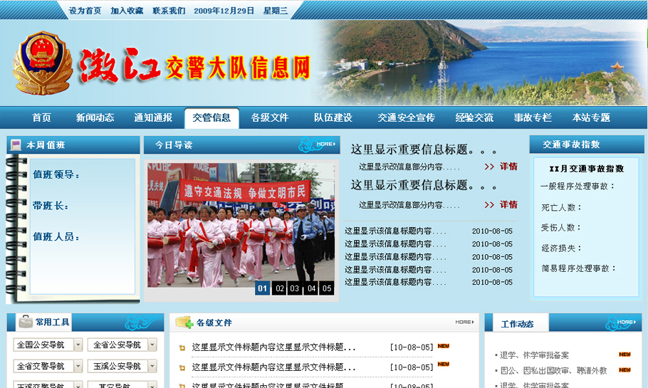 云南澄江交警大队是内部网站,用于交警大队在公安系统内部宣传和工作便利之用。