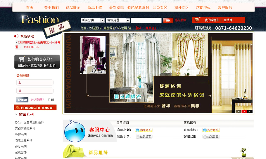 鋆源格调,代理国内知名品牌和欧美高中档窗帘。专业从事布艺软装饰整配、款式设计、色彩搭配,出软装解决方案、兼窗帘加工制作、施工安装。主要产品有布艺窗帘、卷帘、百褶帘、罗马帘、木百叶、铝百叶、香格里拉帘、电动卷帘、电动天棚帘、居家布艺制品、专业布草有宴会系列、西餐桌布系列、桌布及台裙系列、婚礼场景装饰、鸡尾酒台、椅套系列、床上用品系列、席巾系列、桌旗系列、抱枕系列、飘窗垫子、沙发垫子系列等产品。