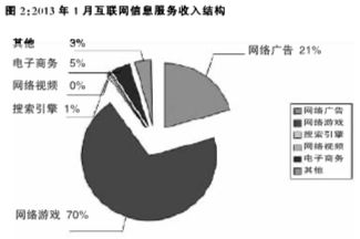 4. 互联网网络游戏收入稳步增长。1月,实现网络游戏收入48.1亿元,同比增长60%,在互联网信息服务收入中占比达69.9%。微博等新型社交使用的广告收入拉动整体网络广告收入增长,较去年同期增长100.4%(见图2)。