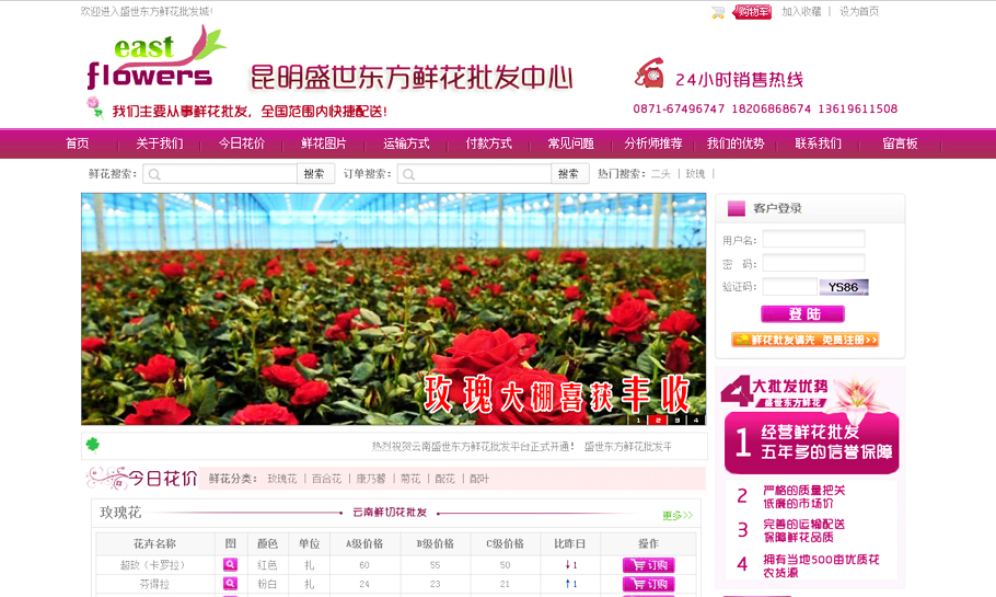 不负云南知名鲜切花批发企业--盛世东方所托,终于在约定期限内完成此鲜切花网上批发平台的开发调试并于今日正式开通上线使用!