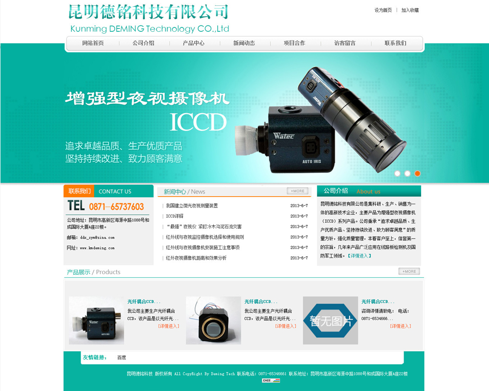 昆明德铭科技有限公司是集科研、生产、销售为一体的高新技术企业,主要产品为增强型夜视摄像机(ICCD)系列产品。公司秉承“追求卓越品质、生产优质产品、坚持持续改进、致力顾客满意”的质量方针,强化质量管理,本着客户至上,信誉第一的宗旨,几年来产品广泛应用在线路板检测机及国防军工领域。