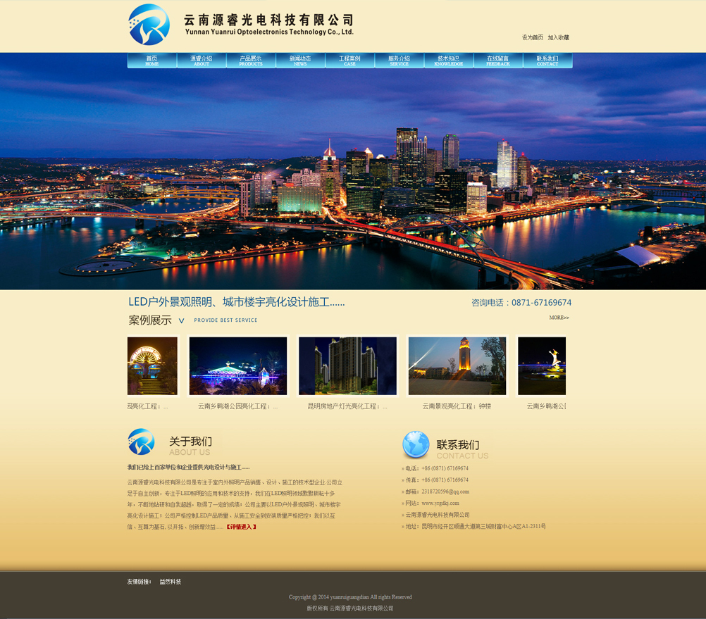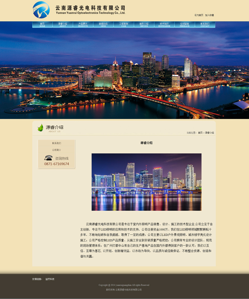 发布时间:2014-04-10 10:38:00 点击:云南网站建设、昆明网站建设专家-昆明Esun网络客户案例之云南睿源光电科技 云南源睿光电科技有限公司是专注于室内外照明产品销售、设计、施工的技术型企业.公司立足于自主创新,专注于LED照明的应用和技术的支持,公司注册资金1000万、我们在LED照明领域默默耕耘十多年,不断地钻研和自我超越,取得了一定的成绩;
