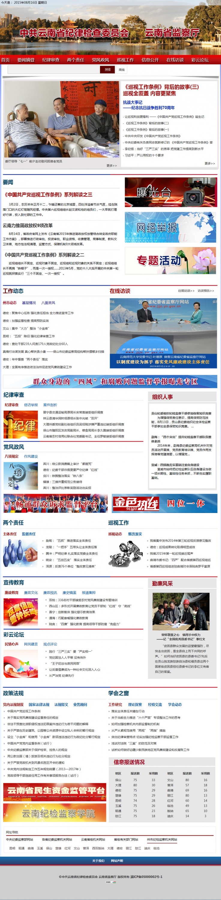发布时间:2015-08-16 15:45:00 点击:云南省纪委云南省监察厅网站自去年上线运行以来,无论是平面设计还是功能应用都获得了多方肯定!