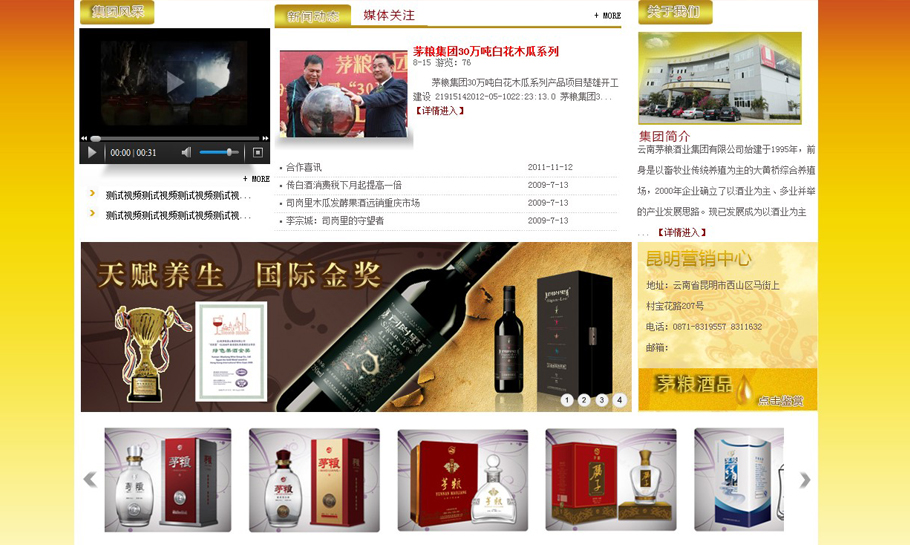 茅粮集团始创于1995年,十八年来,在各级党委、政府和社会各界的鼎力支持下,茅粮人以敢为人先的开拓精神,致力于“创国际茅粮品牌、显中国酒业风流”的远景目标,成功打造了云南第一白酒品牌“茅粮”、开发了世界第一支木瓜发酵酒“司岗里”和中国高端果酒品牌“金铂颐”。