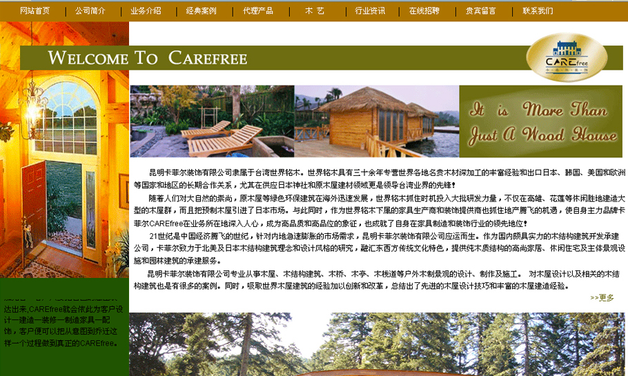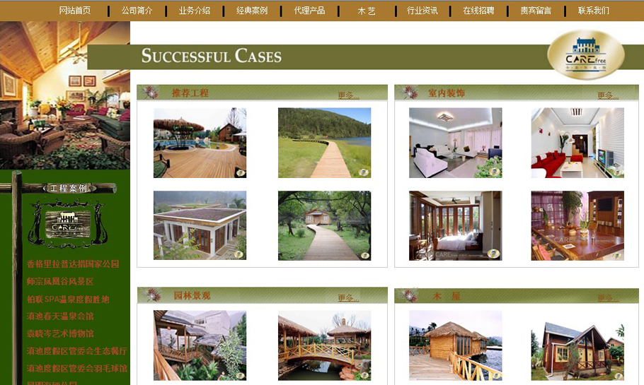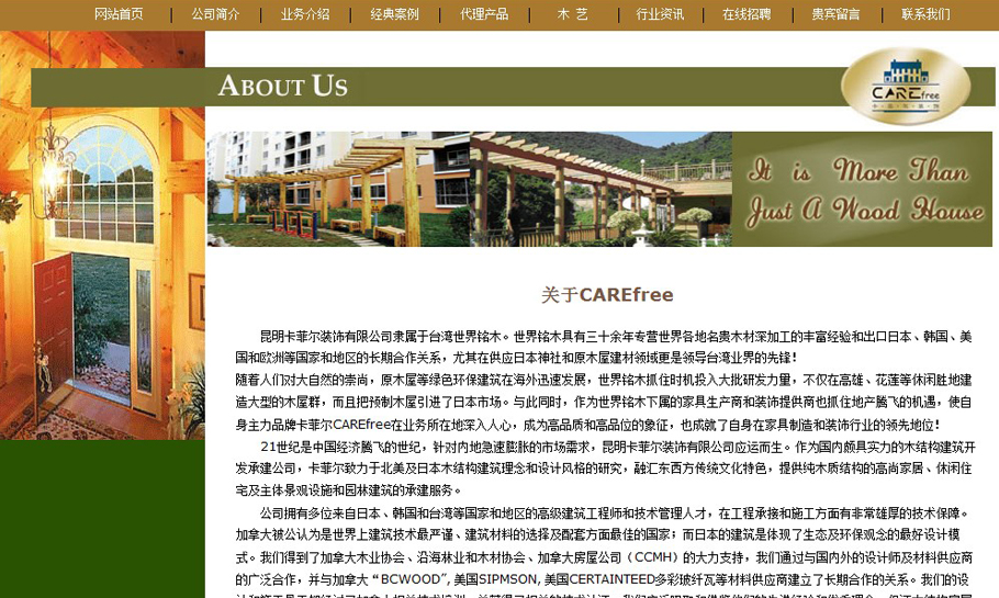 作为昆明第一家纯木结构设计、生产和施工企业,互联网兴起的时候就已经尝试了网站建设!为了更好展现公司实力和作品,不仅在页面美工设计上有极高的要求,同时在案例展示上也有更多样的形式!网站的成功运营为公司创造了效益!