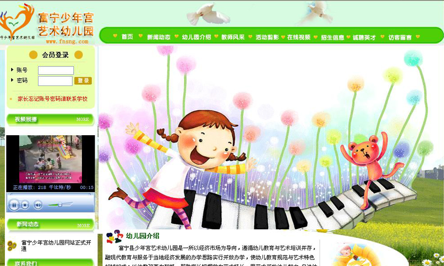 富宁县少年宫艺术幼儿园是一所以市场为导向,遵循幼儿教育与艺术培训并存,融现代教育和服务于当地经济发展的办学思路,实行开放办学,使幼儿教育更加规范。该网站建立于2009年,在线视频与会员权限观看是本站最大特点。